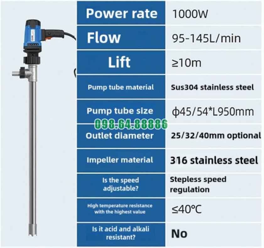 Đặc điểm nổi bật nhất của bơm là thiết kế cắm thẳng đứng vào thùng phuy.