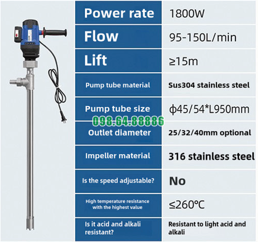 Sự phối hợp nhịp nhàng giữa động cơ và trục quay Bơm thùng phuy lỏng nhiệt độ cao JDT-1800W-G260 là nền tảng tạo nên khả năng vận hành ổn định, lực bơm mạnh và độ bền cao. Nhờ thiết kế đồng bộ, chính xác và chịu tải tốt, bơm đáp ứng hiệu quả các yêu cầu khắt khe khi xử lý dung dịch nóng trong môi trường sản xuất công nghiệp.