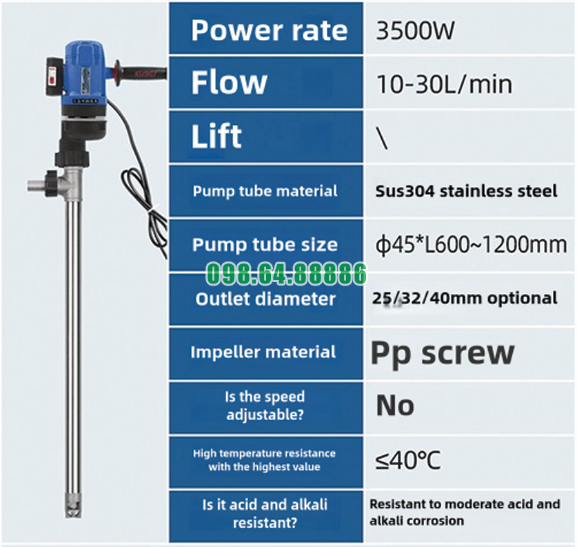 Bơm trục vít điện cầm tay cho chất lỏng đặc sệt JDT-3500W-LG