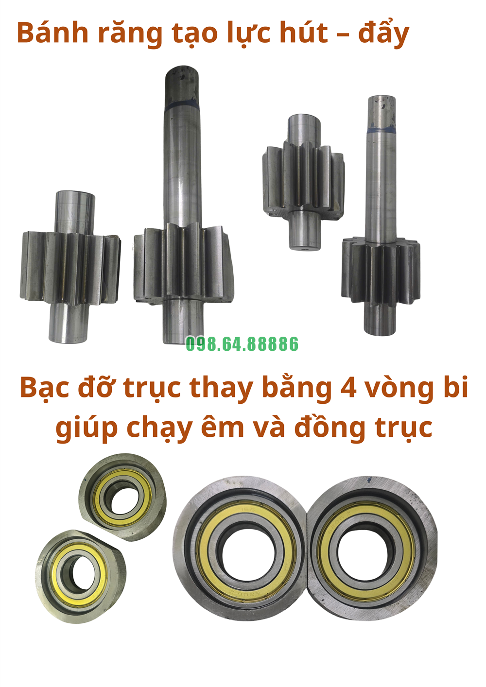 Toàn bộ thân bơm, bánh răng và trục được thiết kế theo hướng tối giản, loại bỏ các chi tiết không cần thiết. Điều này giúp trọng lượng của đầu bơm được giảm tối đa mà vẫn đảm bảo độ chắc chắn và hiệu suất làm việc.