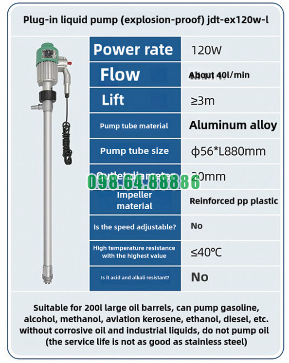 An tâm tuyệt đối về phòng chống cháy nổ với Máy bơm chất lỏng cắm trực tiếp chống cháy nổ JDT-EX120W-L