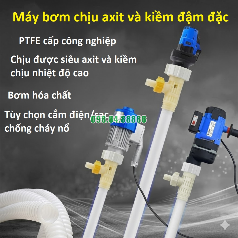 Thiết bị được thiết kế chuyên biệt cho thùng phuy 200L, phù hợp với nhu cầu bơm rút, chiết rót và trung chuyển các loại axit, kiềm và dung môi công nghiệp.
