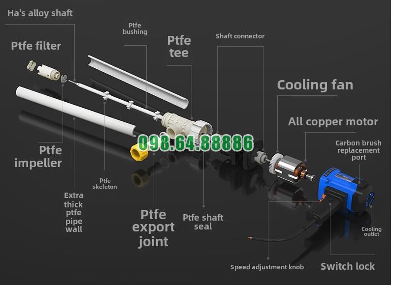 Vì vậy, cấu trúc trục bơm chắc chắn của Bơm điện thùng phuy 200L JDT-1800W-PTFE giúp tối ưu hiệu suất truyền động.