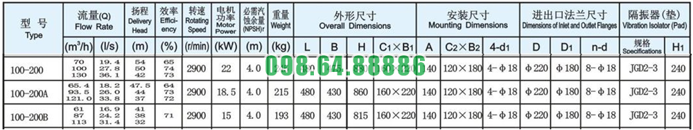 Máy bơm inline, bơm đa tầng cánh đứng ISG100-200, IRG100-200 22kw, 100m3, 50m