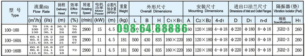 Công suất động cơ của bơm ISG100-160B, IRG100-160B thường dao động từ 15kW – 45kW (tùy theo cột áp và lưu lượng).