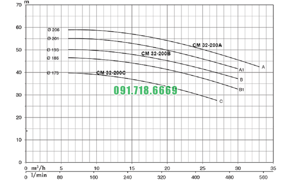 Đường cong hiệu suất bơm nước công nghiệp model CM32-200B