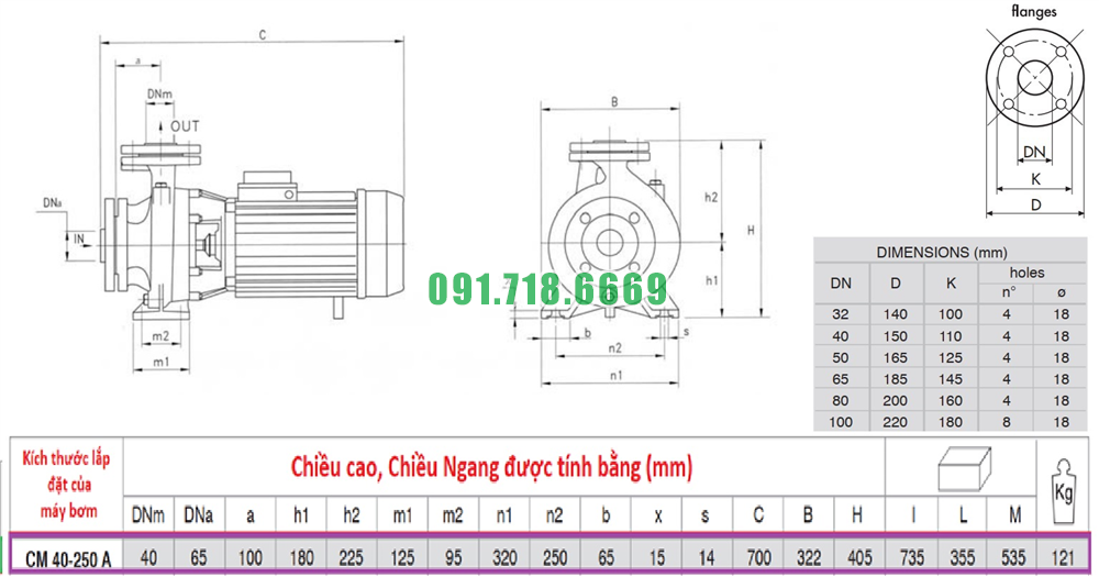 | CM40 - 250A | 42 m3 / h | 90.4 m | 15 kw | 380 v | Dn65 / 40 mm | Vỏ gang FC200 |
