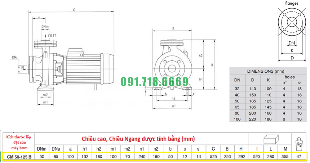 | CM40 - 250A | 42 m3 / h | 90.4 m | 15 kw | 380 v | Dn65 / 40 mm | Vỏ gang FC200 |