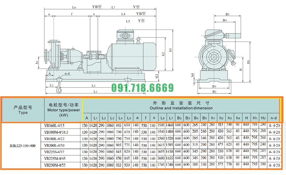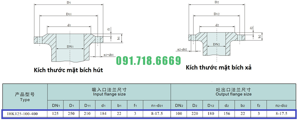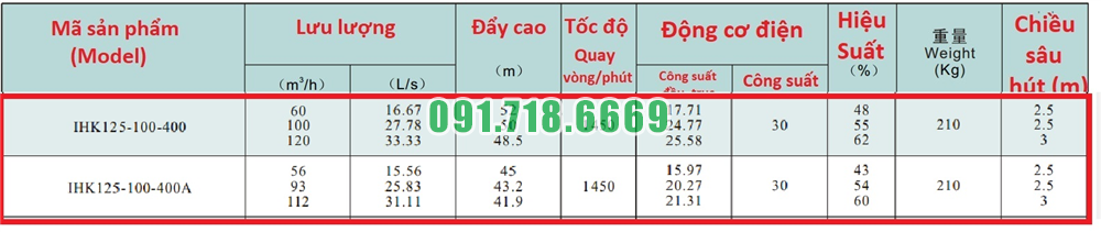 Bán máy bơm nước cánh hở IHK125-100-400 hiệu suất 120 m3/h