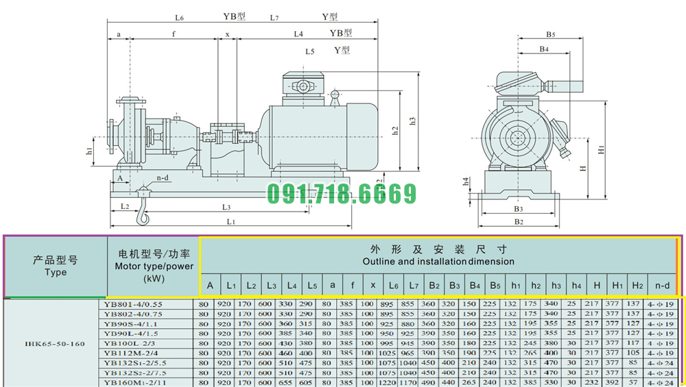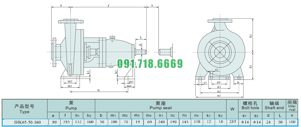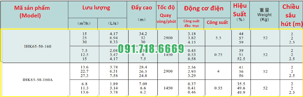 Bán máy bơm nước cánh hở IHK65-50-160 kích thước 50 mm