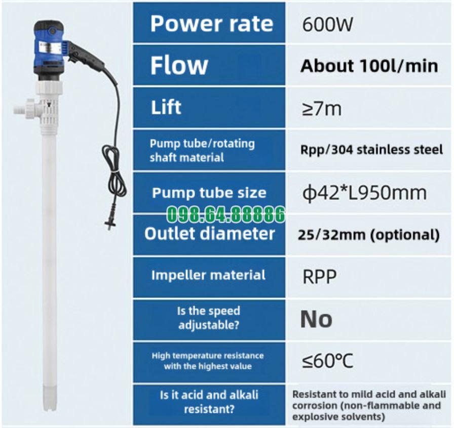 Bơm điện chuyên dụng cho thùng phuy 200L JDT-600W-RPP