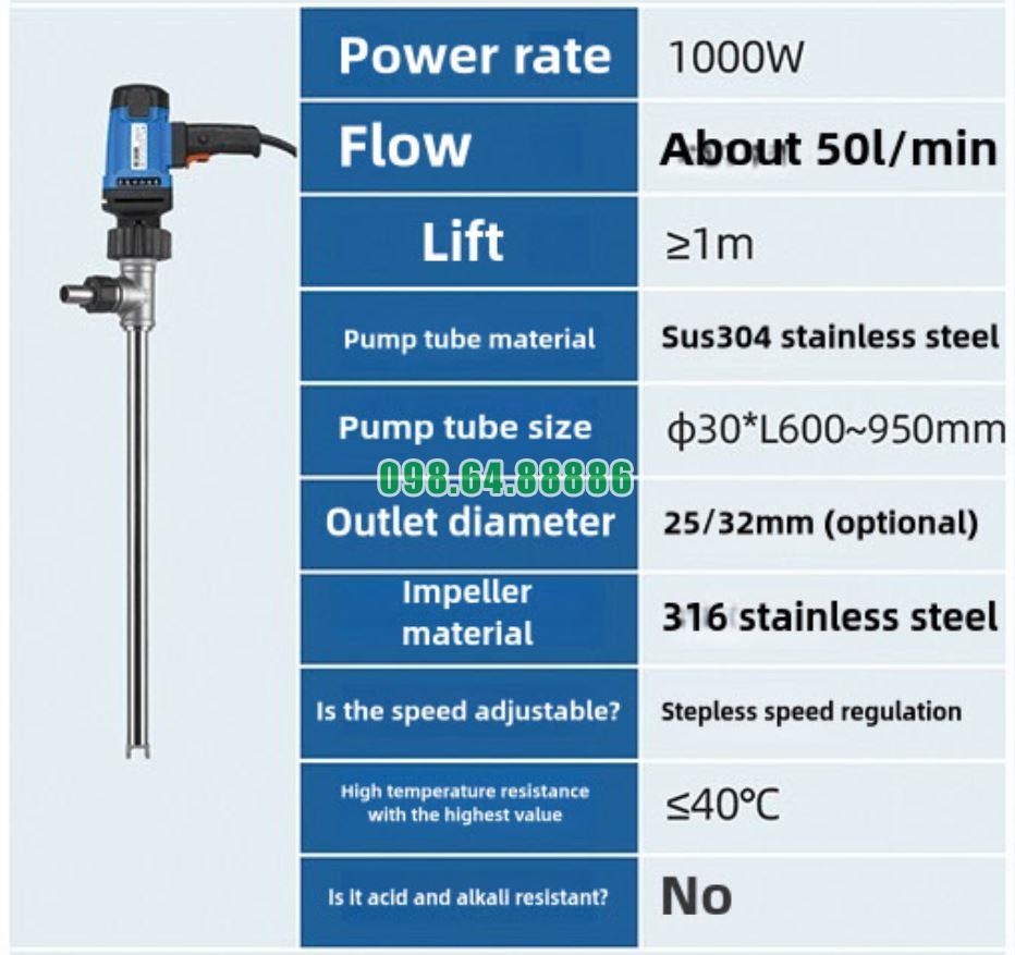 Bơm hút dầu nóng trong thùng phuy JDT-1300W-G260