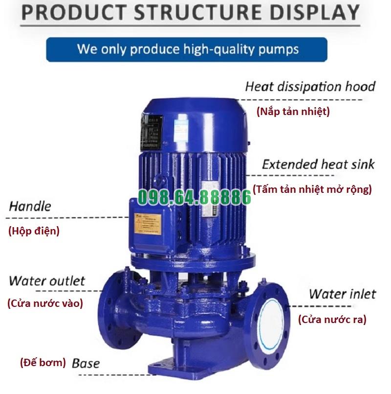 Bơm ly tâm trục đứng inline, bơm đồng trục đứng, bơm đường ống ISG65-160, IRG65-160 4kw