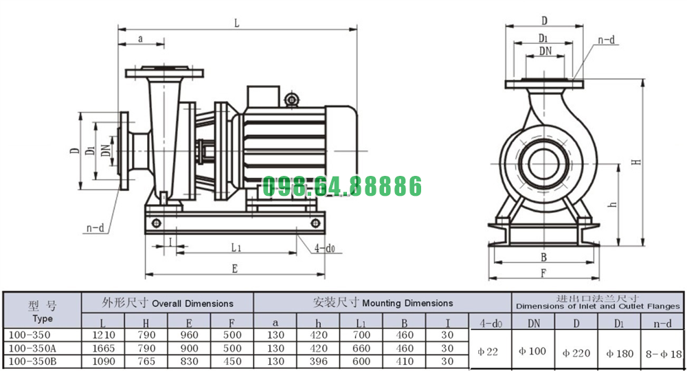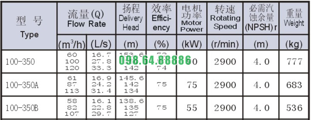 Bơm nước trục ngang SLW100-ISW100-350 lưu lượng 33.3 L/s