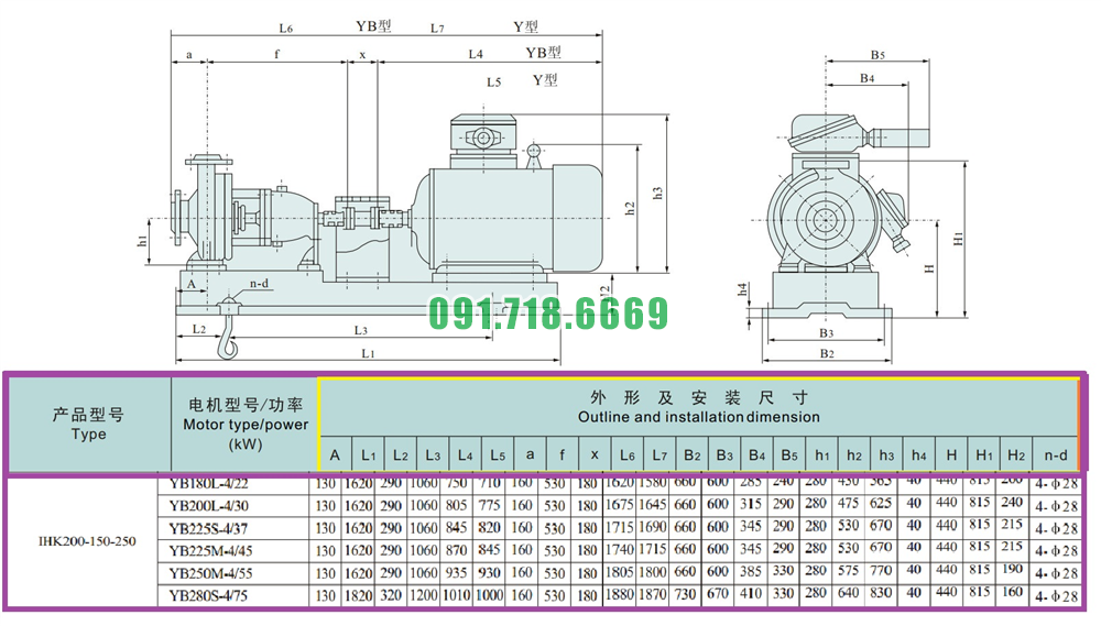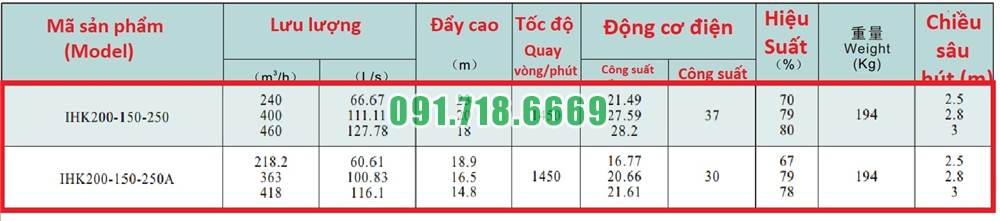 Đại lý máy bơm nước sạch cánh hở IHK200-150-250 dòng điện 380v