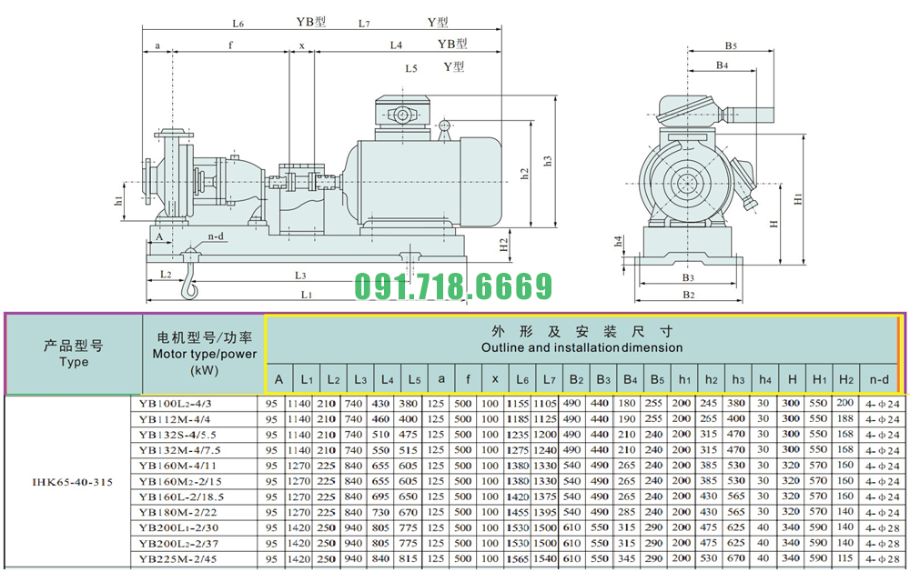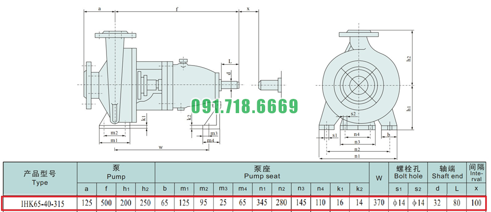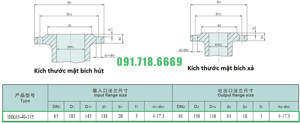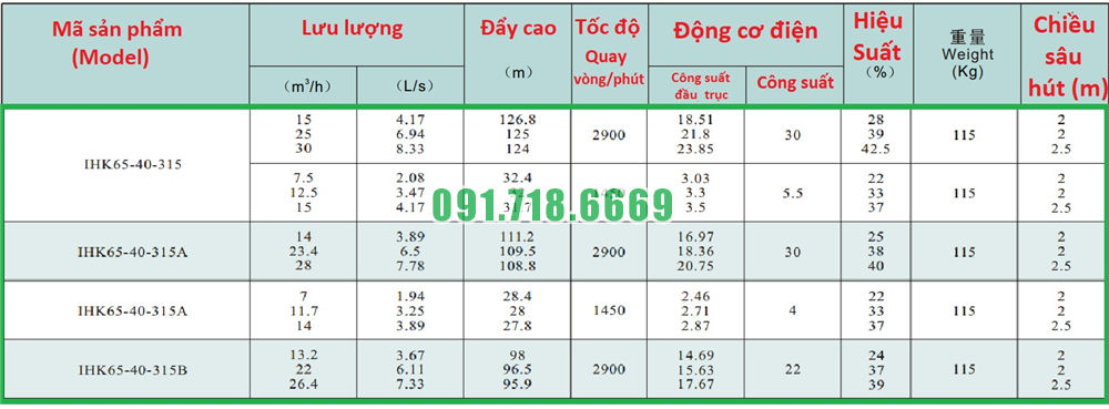 Giá bán bơm li tâm cánh hở lưu lượng 30 m3/h model IHK65-40-315