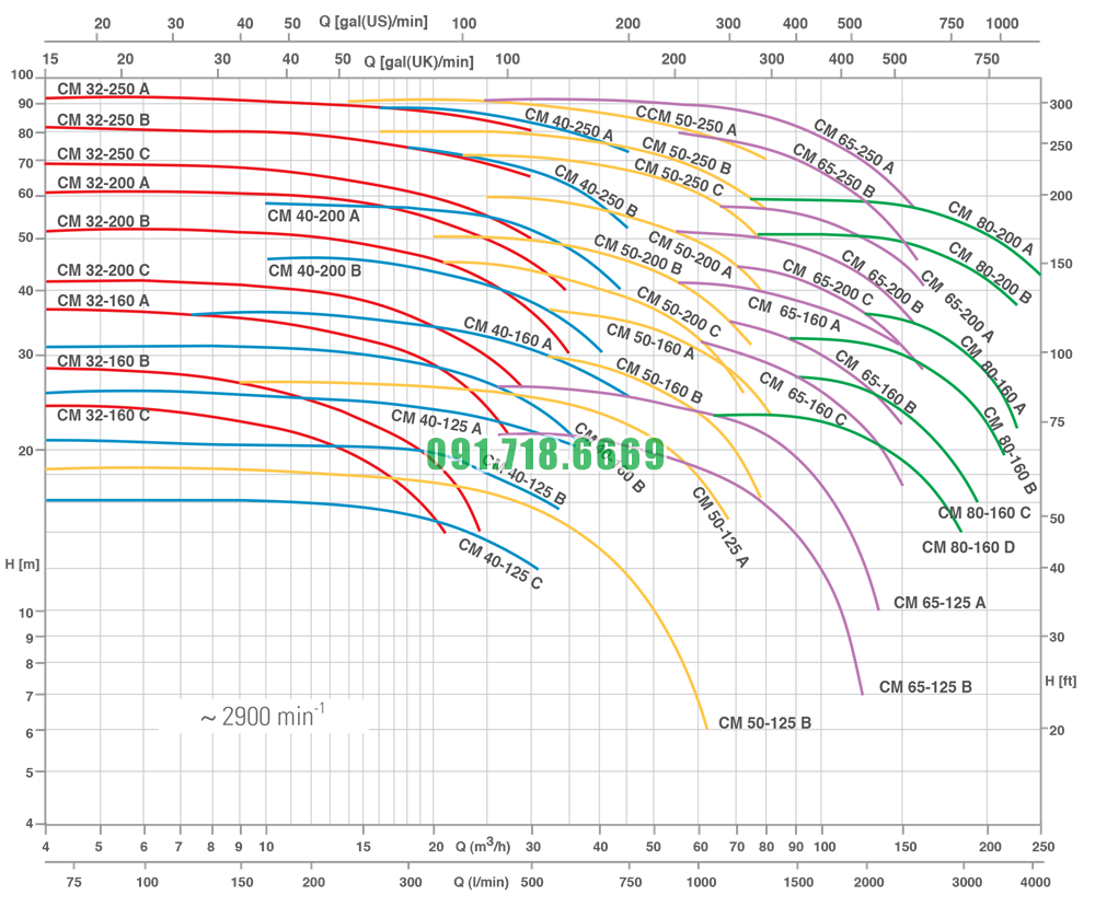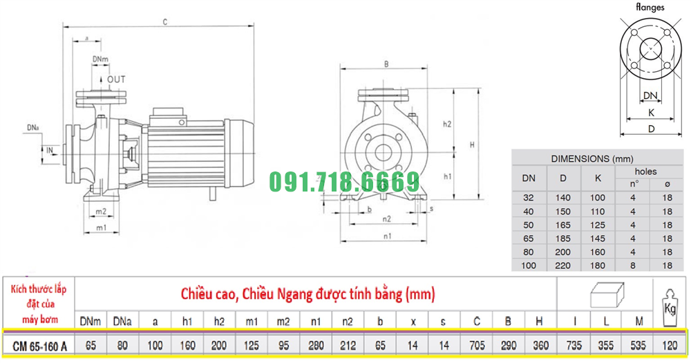 | CM65 - 160A | 144 m3 / h | 44 m | 15 kw | 380 v | Dn 80 / 65 mm | Vỏ gang FC200 |