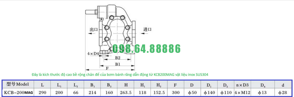 Thông số kỹ thuật của bơm bánh răng KCB200