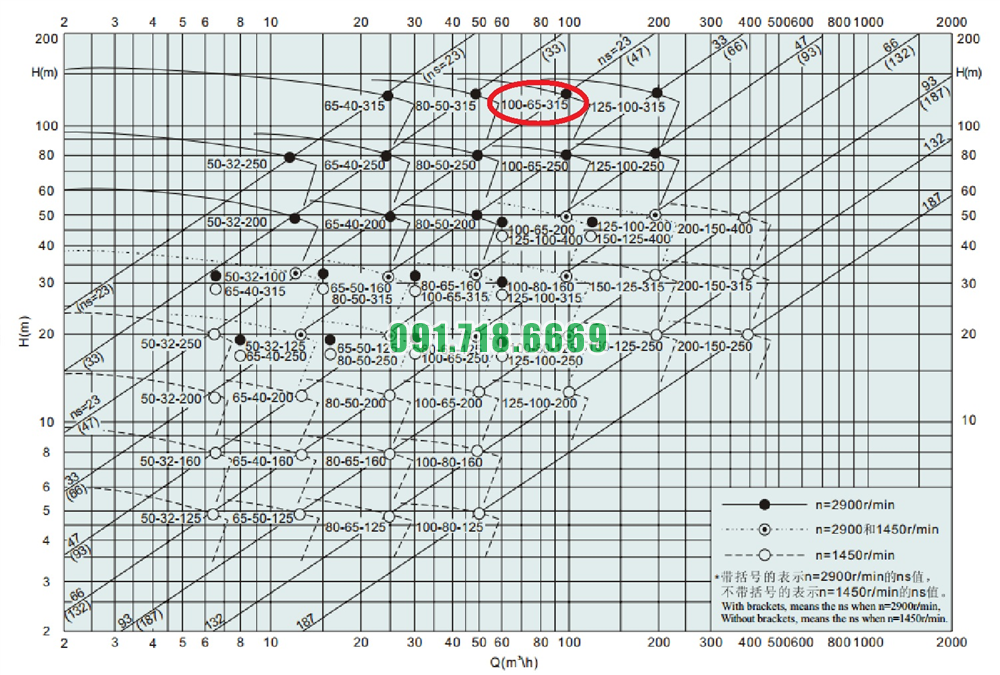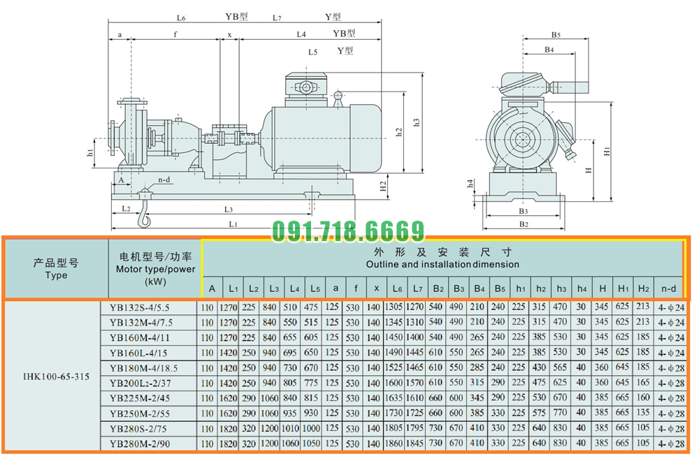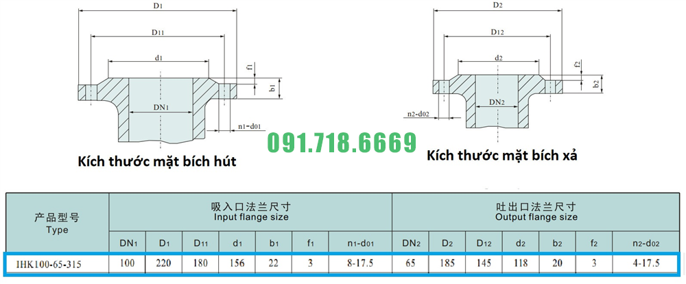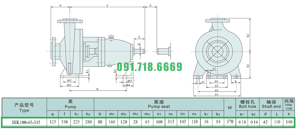 Máy bơm cánh hở li tâm trục ngang IHK100-65-315 lưu lượng 120 m3/h