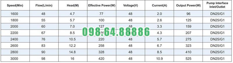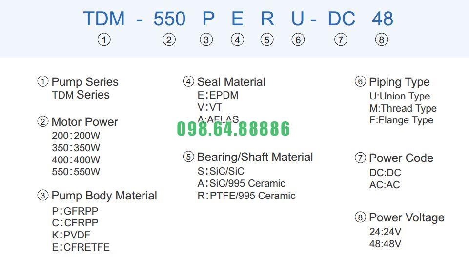 Bảng thông số kỹ thuật bơm hóa chất điện áp 24v và 48v TDM-400ERU-DC48