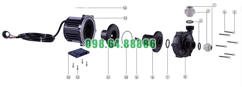 - Cánh quạt quay: Khi động cơ cung cấp năng lượng điện (ở 24V hoặc 48V DC) cho máy bơm, điện năng này được chuyển đổi thành cơ năng trong động cơ. Động cơ quay sẽ tạo ra chuyển động quay cho cánh quạt (impeller) của bơm.