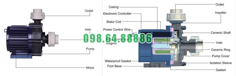 - Hiệu suất cao: Cơ chế dẫn động từ giúp giảm ma sát, từ đó giảm tổn thất năng lượng và cải thiện hiệu suất của bơm.